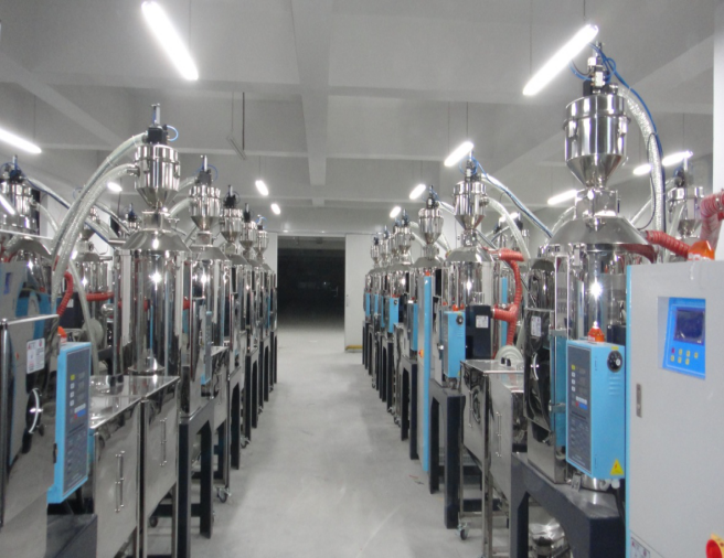 7.中央供料系統(tǒng)采用真空傳送方式,通過集中的管路系統(tǒng)將塑料原料從儲(chǔ)料罐輸送到中央除濕干燥系統(tǒng),然后將干燥后的原料輸送到每臺(tái)注塑機(jī)中。